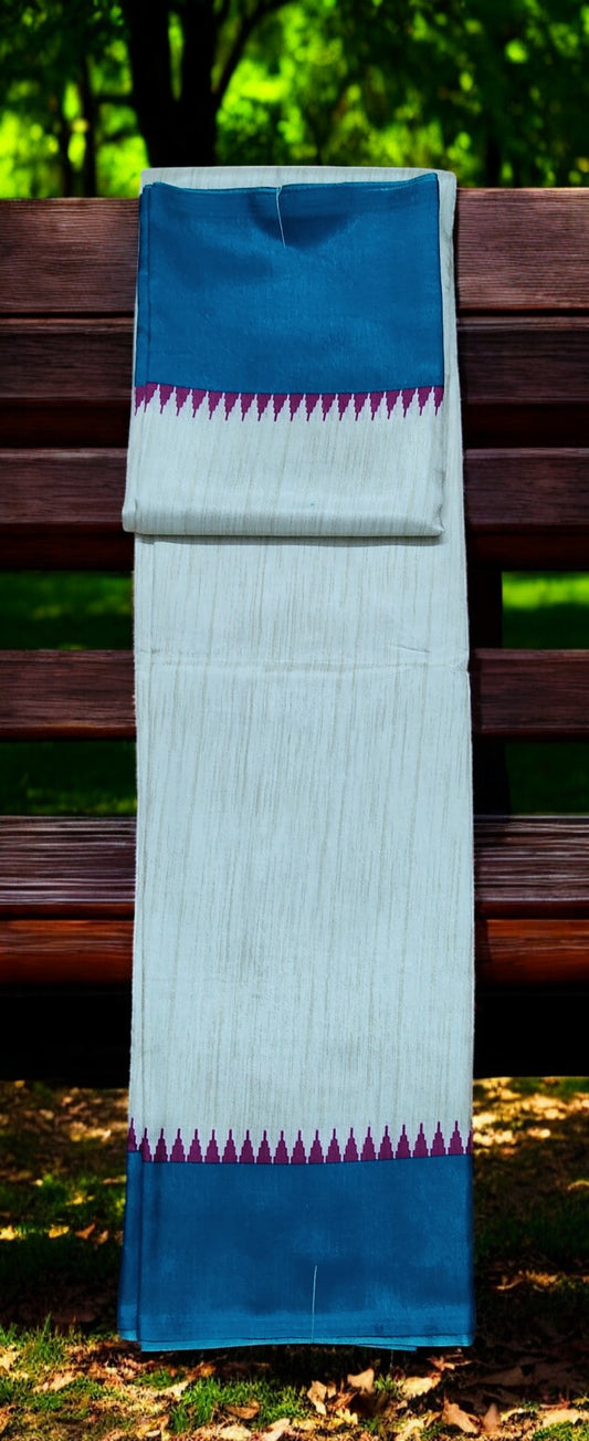 Cream temple border silk saree