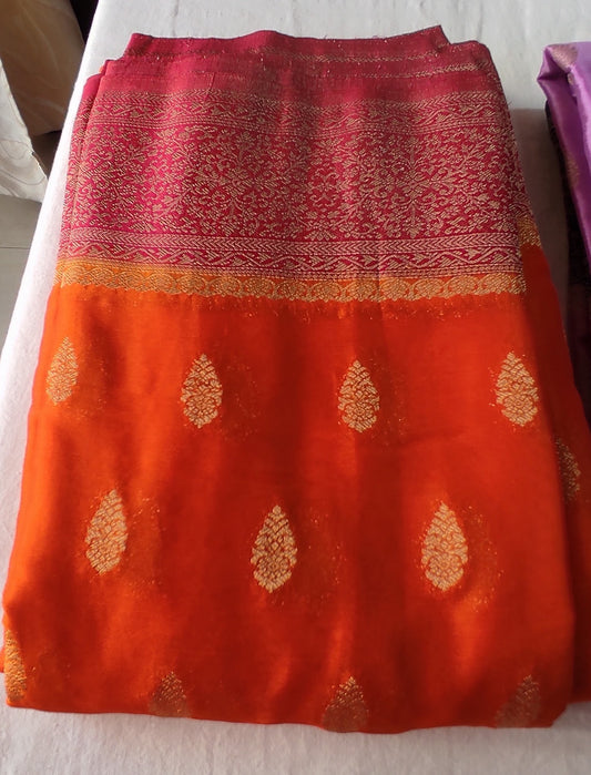 Sold outOrange Pink Crepe silk saree