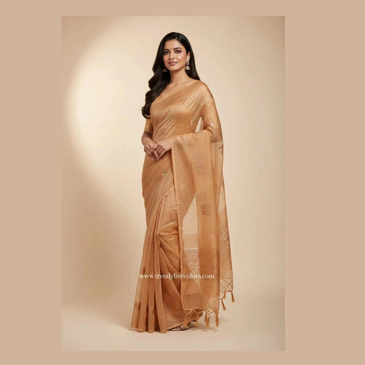 Golden Brown Organza Designer Saree