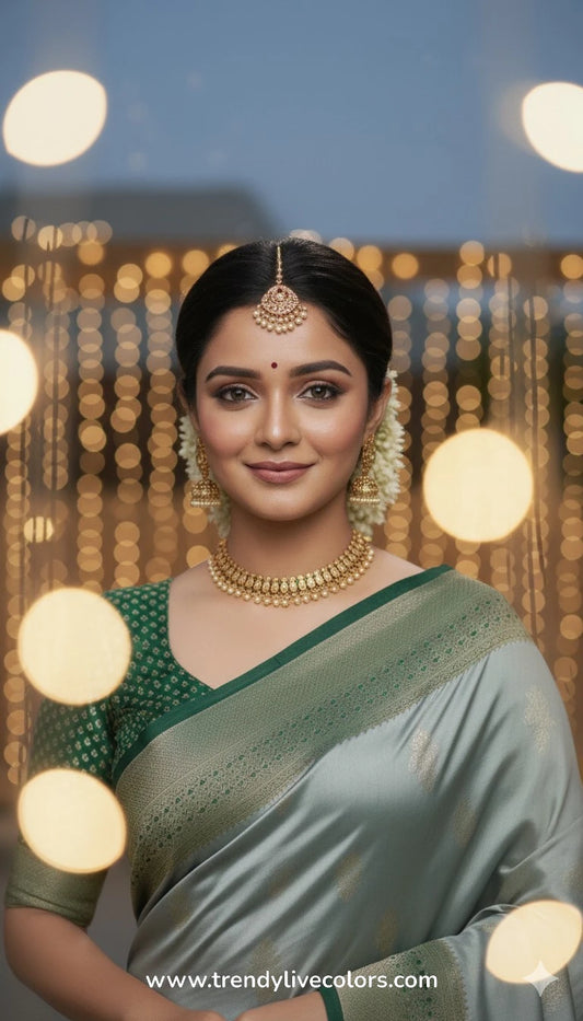 Slate Silver & Emerald Green Silk Saree